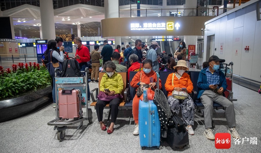 前往泰国的团队游旅客等待办理值机。记者 刘洋 摄