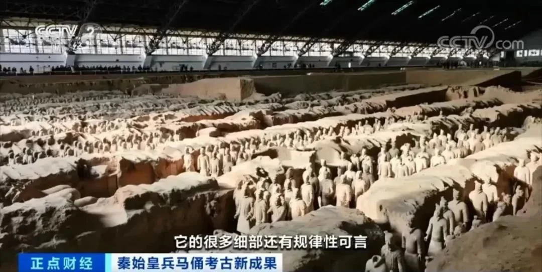此前的考古研究显示,秦俑一号坑分为11个过洞,过洞内几千件兵马俑组成军阵,俑坑中有38路纵队,步兵、车兵有序排列,组织严密完备,体现了古代兵书所记载的前后整齐,四方为绳的排布格局。