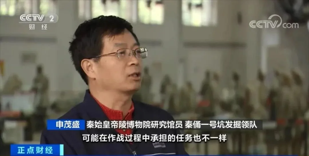 秦始皇帝陵博物院研究馆员 秦俑一号坑发掘领队 申茂盛: 前区排列全部是战袍俑,我们叫前锋部队。