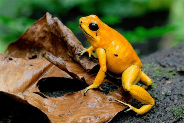 金色箭毒蛙:脸色透亮的一种蛙(毒性极强十分恐惧)