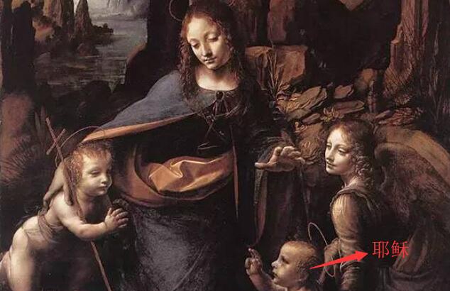 《岩间圣母》平常解读便是上头的了,交下来便是恐惧解读了。如上图,圣母的左手像鹰爪一般,好像正抓着一个通明人头,最令人毛骨竦然的是底下的耶稣,他干出了一个砍物品的手势,好像要把谁人通明人头给割下来。
