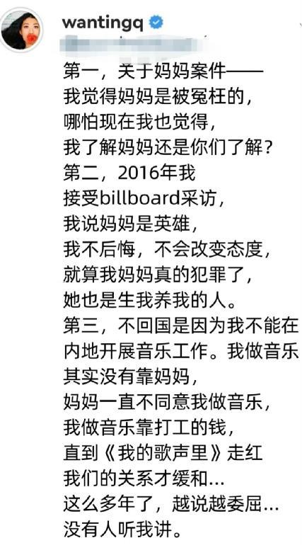 后来,曲婉婷一直在强调:自己从没有从母亲那谋到福利,她的钱,都是靠她自己赚的。