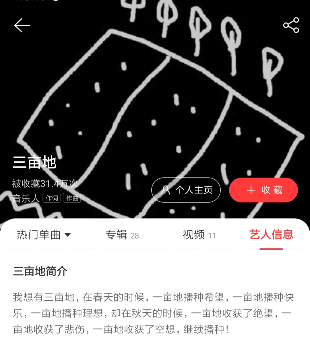 这是三亩地在云音乐里的自我介绍。