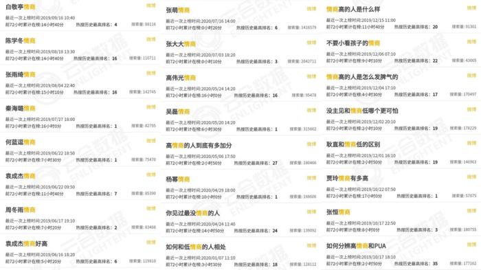 微博热搜上,也总是会定期出现“xxx情商高”/“xxx情商低”的词条,我们总爱点进去,从几分钟的视频或几张截图中,就可以挥斥方遒,隔空评估一个素不相识的人的情商,心理学家见了都想拥有这种隔空算命的能力。