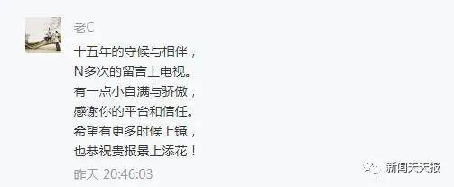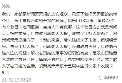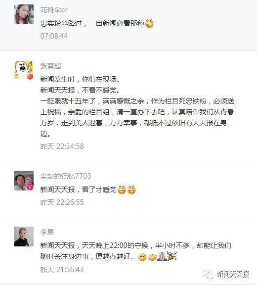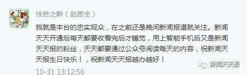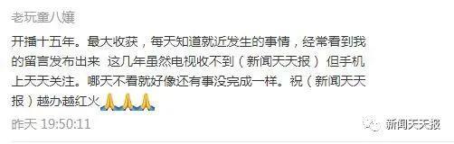 岁月匆匆,《新闻天天报》引流主流,拥抱百姓,在观众的呵护和陪伴下走过成长的十五年,在这十五年里《新闻天天报》收获了观众的信任和掌声。在栏目开播十五周年之际,许多热心网友和观众,也送上了他们对《新闻天天报》的真诚祝福。