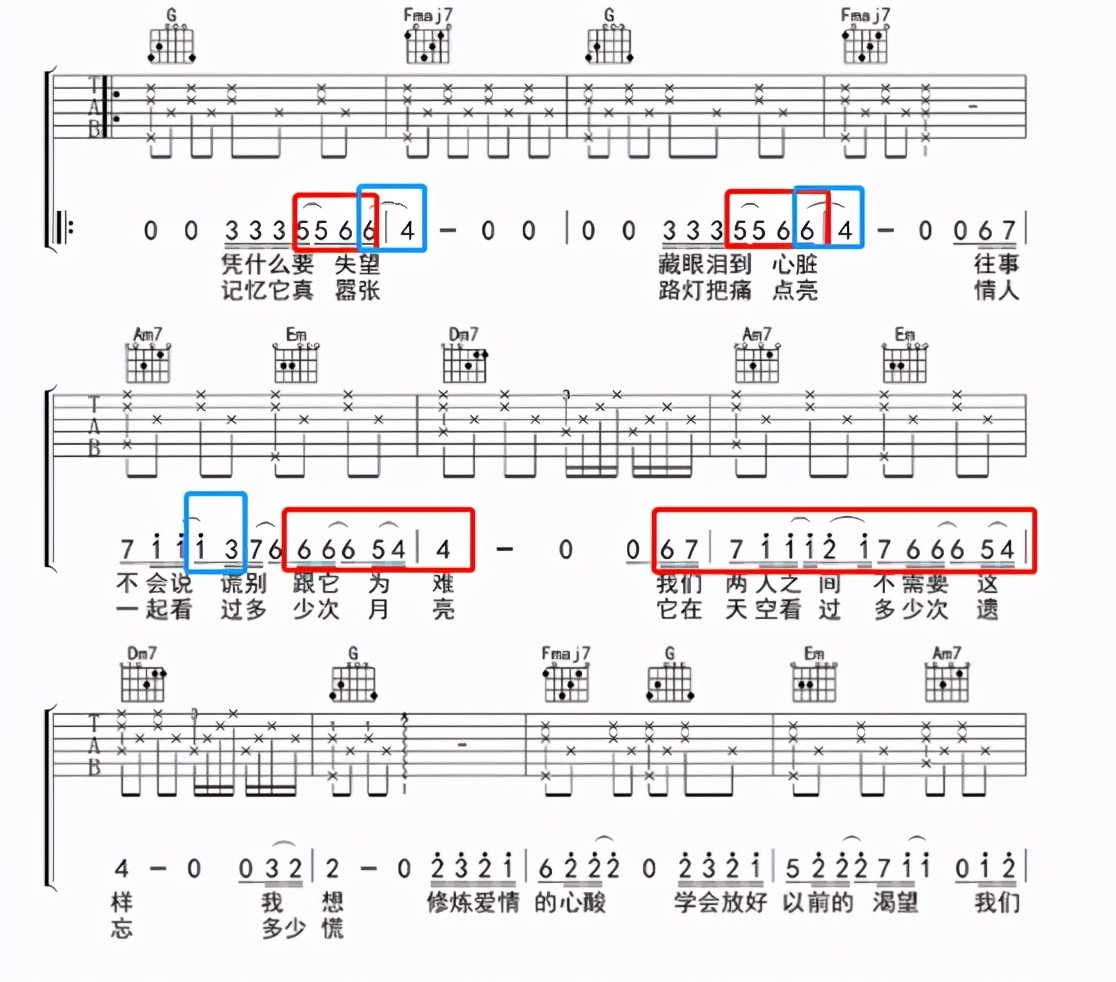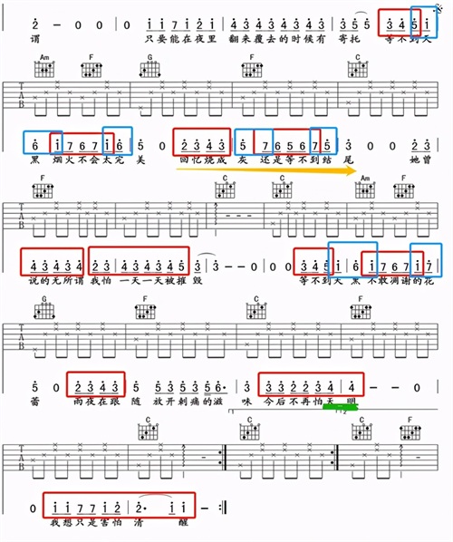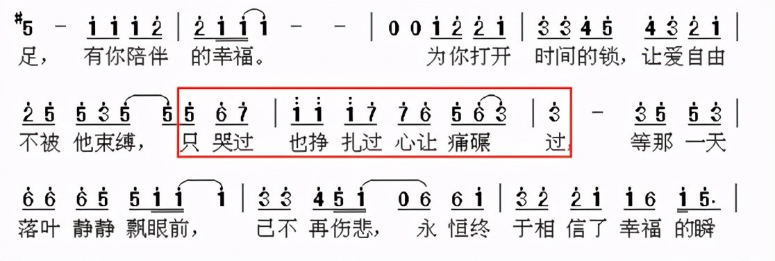这首歌的副歌部分也是4536251的走向,亮耳之处在于乐句中几个变化音的使用。