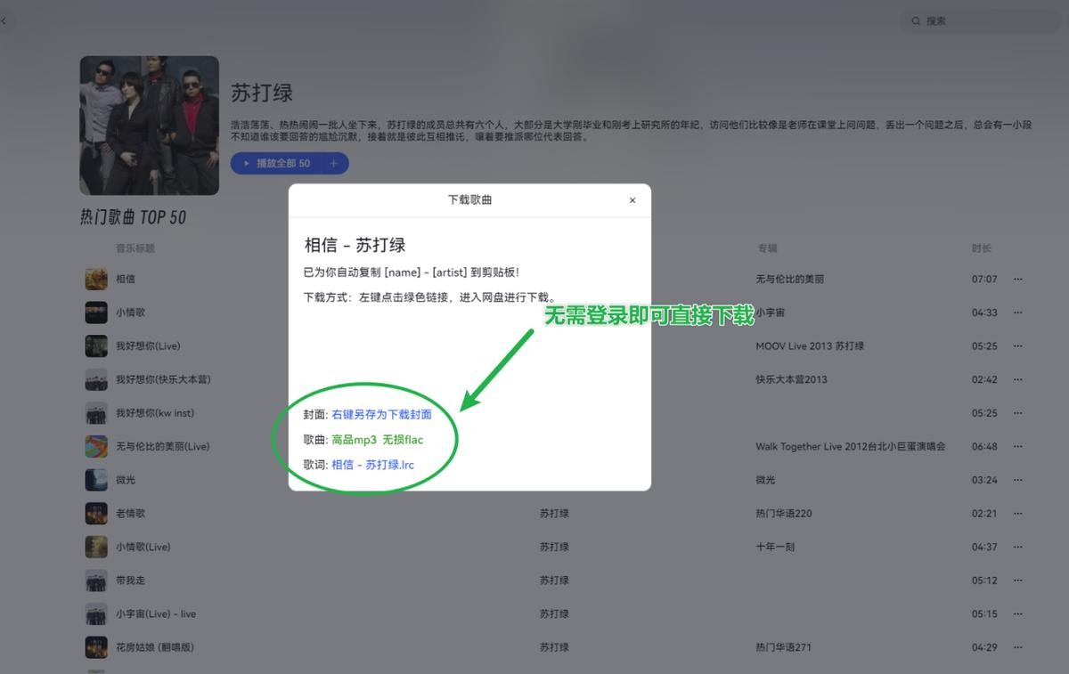 一个界面简洁的音乐下载软件,不用登录就能下载,可以直接下载到桌面或者指定文件夹,不用从网盘下载到本地