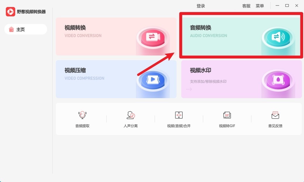 第一步:首先下载并打开软件,点击界面内的音频转换选项。