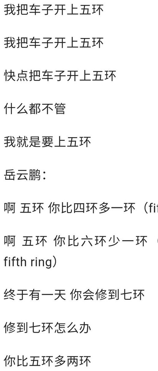 最后一首当然是《五环之歌》了这应该算是神曲了,也是在春晚上一夜成名。后来小岳岳多次说他都唱腻了!