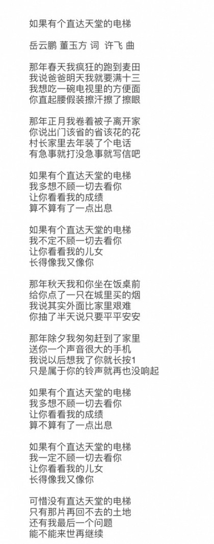第三首,《如果有个直达天堂的电梯》