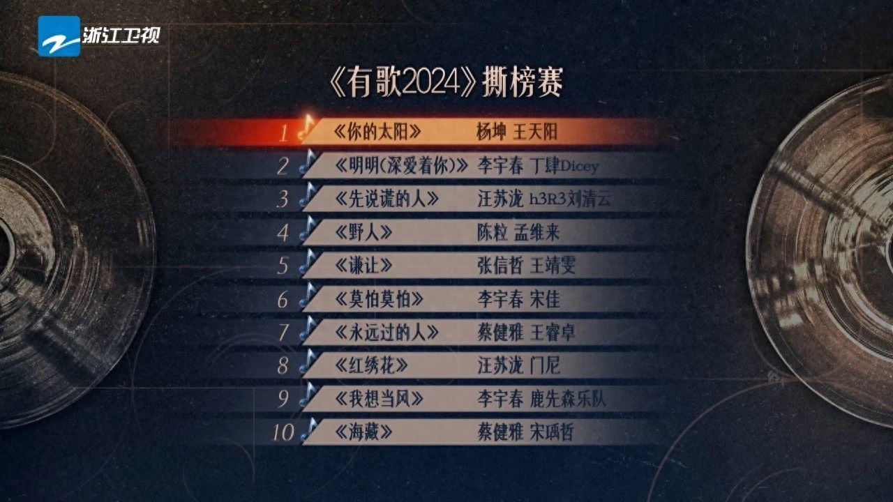 《有歌2024》开启撕榜赛 榜单第一歌曲《你的太阳》迎来最猛烈冲击