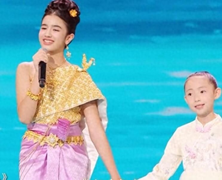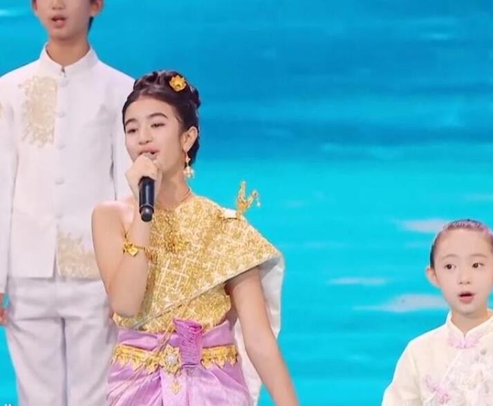 在表演中,珍娜穿上了传统的柬埔寨服饰,用流利的中文演唱了《共饮一江水》。她展现出深厚的演唱功底,传承了中柬友好的文化传统。她不仅注重传统文化,更是金光闪闪的皇冠点缀,散发出浓厚的王室贵气。珍娜的着装既尊重了传统,又充满现代时尚感,使得她在11岁的年纪中展现出成熟和迷人的一面。