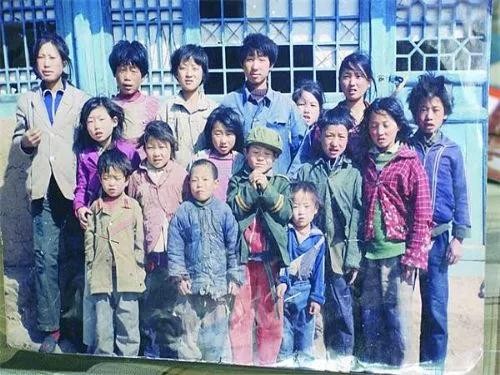 △“希望工程”受捐第一人张胜利(后排左四)接受“希望工程”资助时与小伙伴合影
