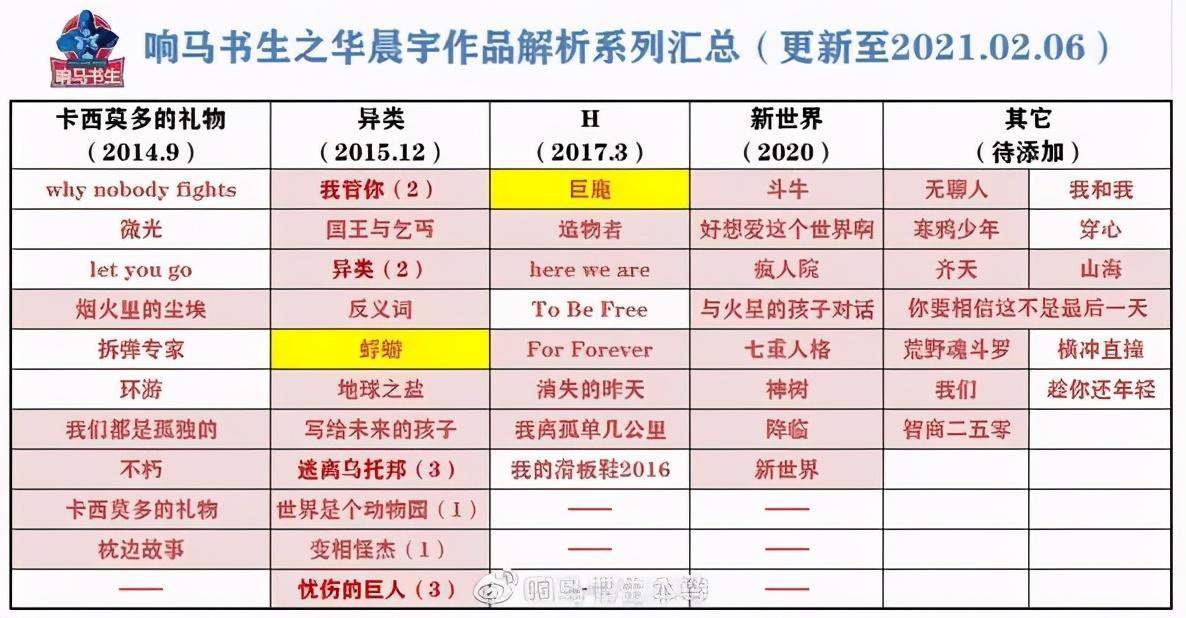 一位网友解析了30多首华晨宇歌曲的歌词。/@响马书生本尊