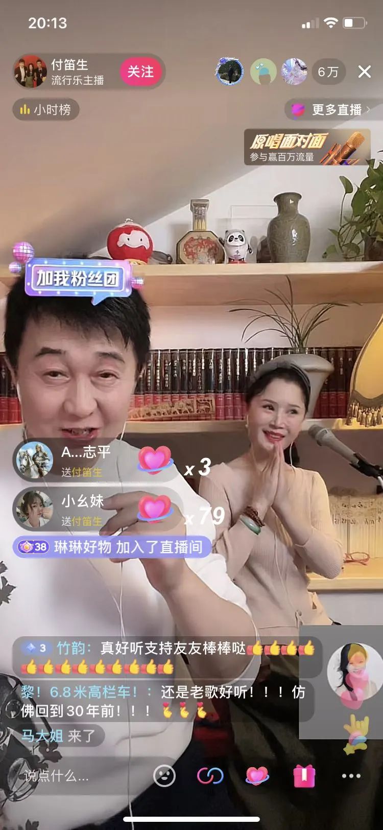 从去年11月至今,付笛生任静夫妇更是进行了40多场家庭音乐会直播,平易近人的家庭音乐会也拉近了和粉丝之间的距离,单场最高观看人数达900万,这些老牌歌手正在直播中焕发事业第二春。