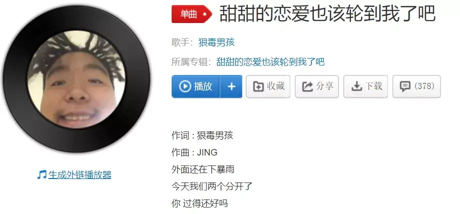 比如总是瞎J8起歌名的狠毒男孩就作了一首:《甜甜的恋爱也该轮到我了吧》,虽然歌词没啥营养,但这首歌你听个一两遍绝对会上瘾。