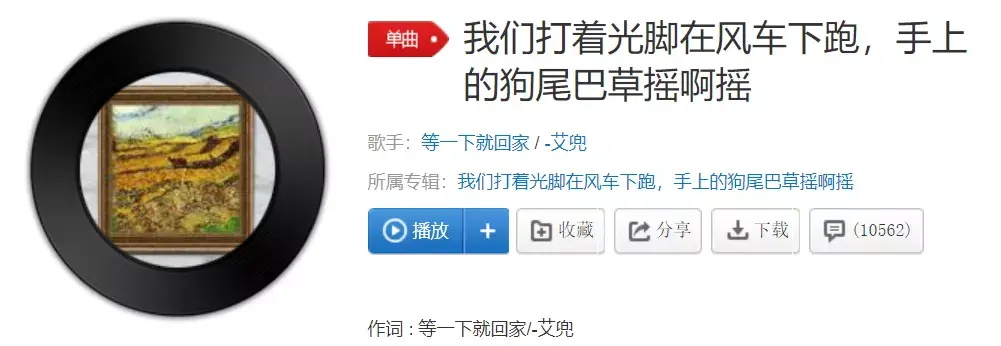 还有他的另一首歌《我们打着光脚在风车下跑,手上的狗尾巴草摇啊摇》。