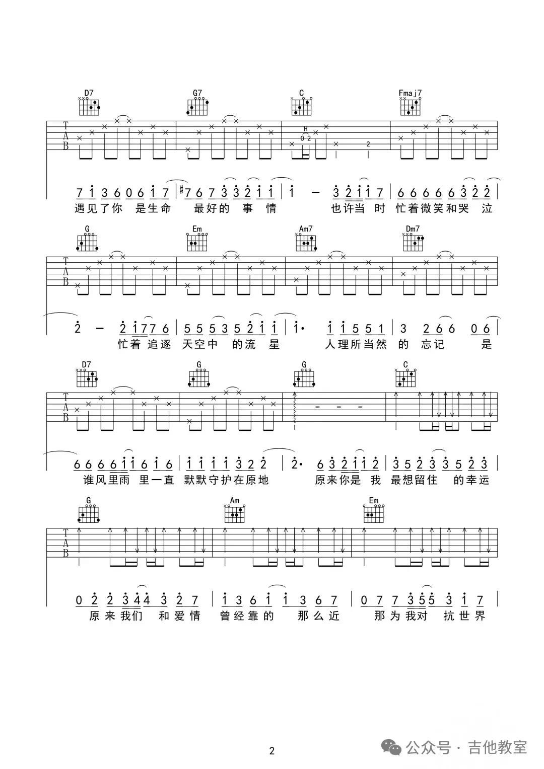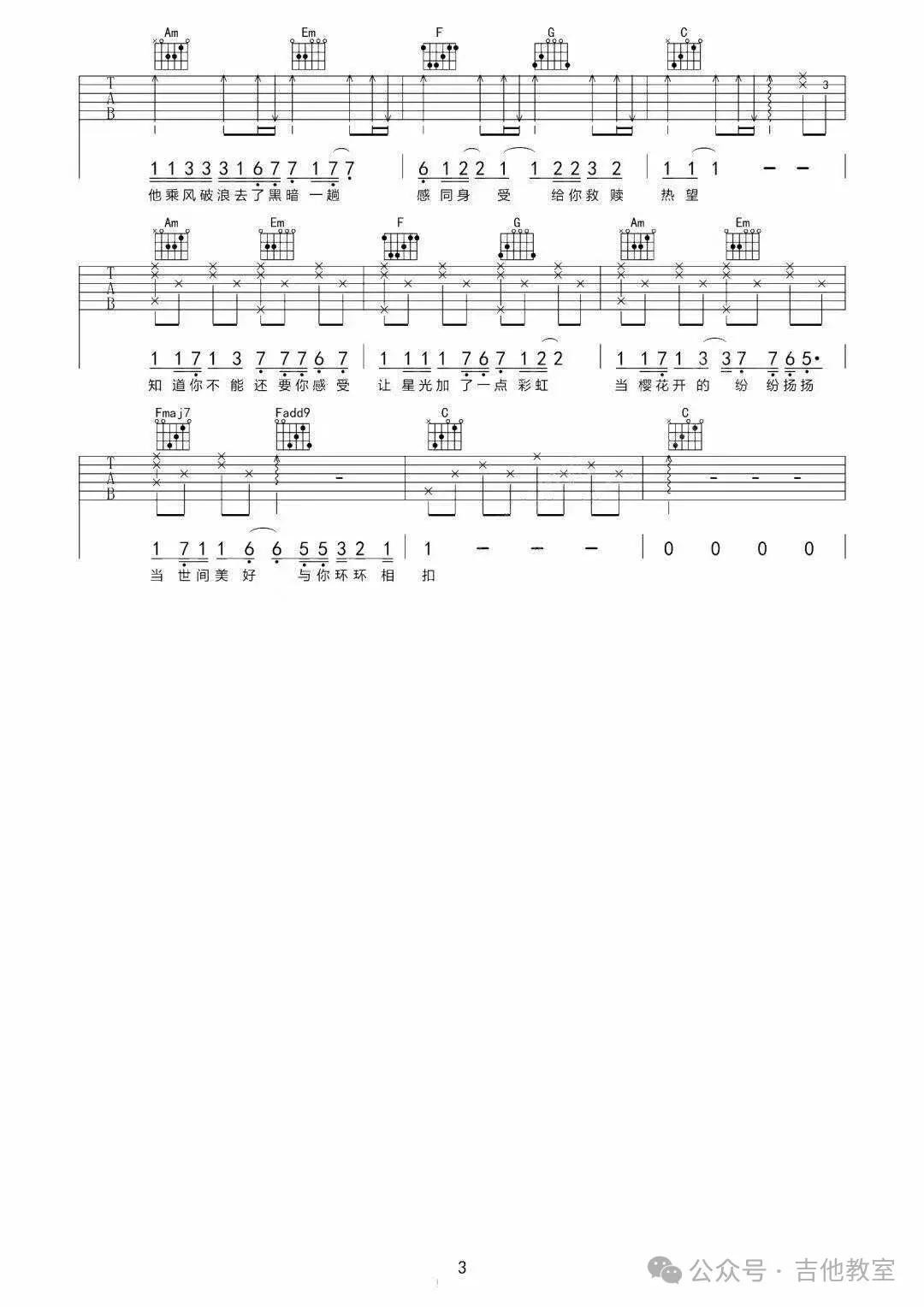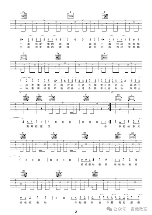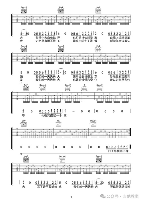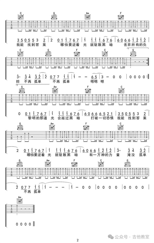 这首歌曲和弦不多,旋律悠扬,适合初学者感受吉他音乐的魅力。