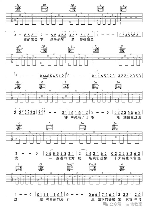 这首经典老歌的和弦简单,旋律悠扬,非常适合初学者练习手指的灵活性和节奏感。