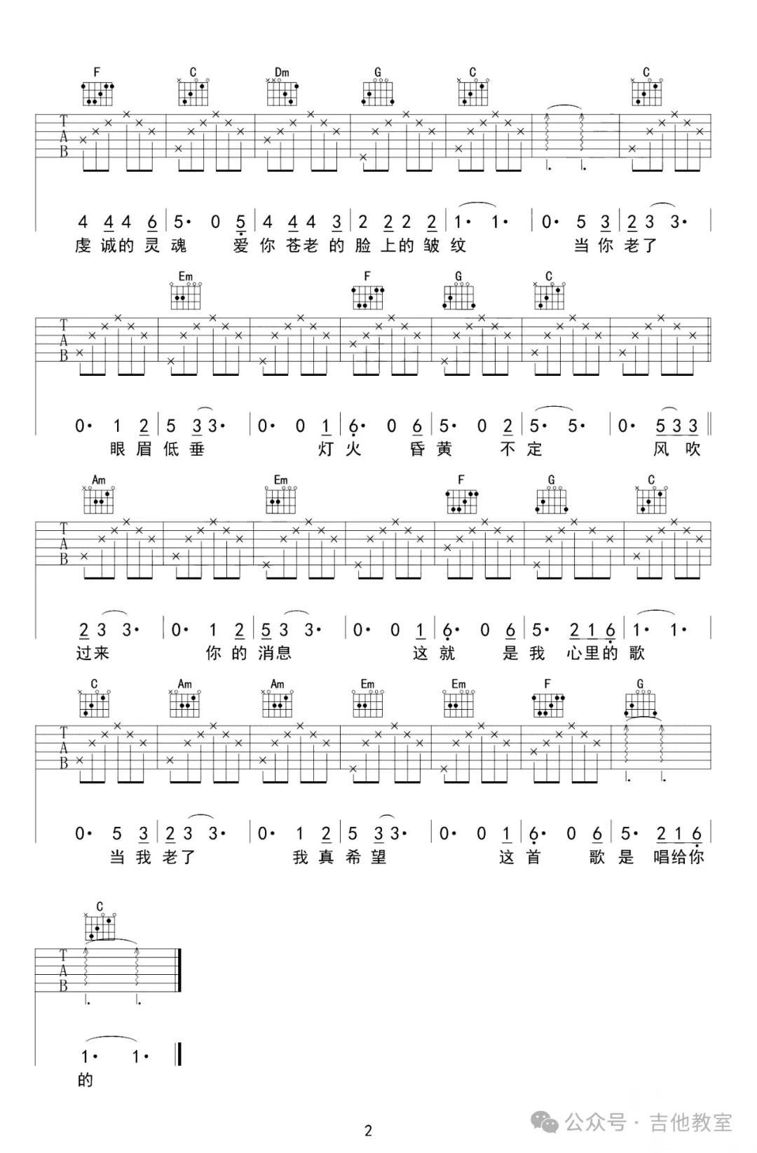 《当你老了》吉他谱