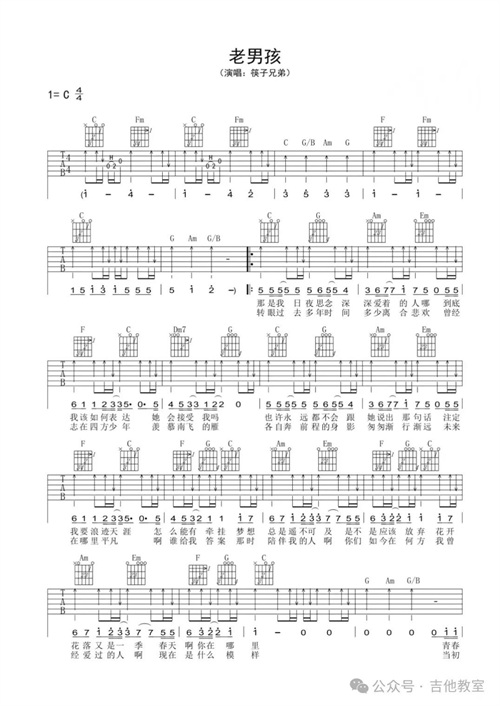 筷子兄弟《老男孩》吉他谱