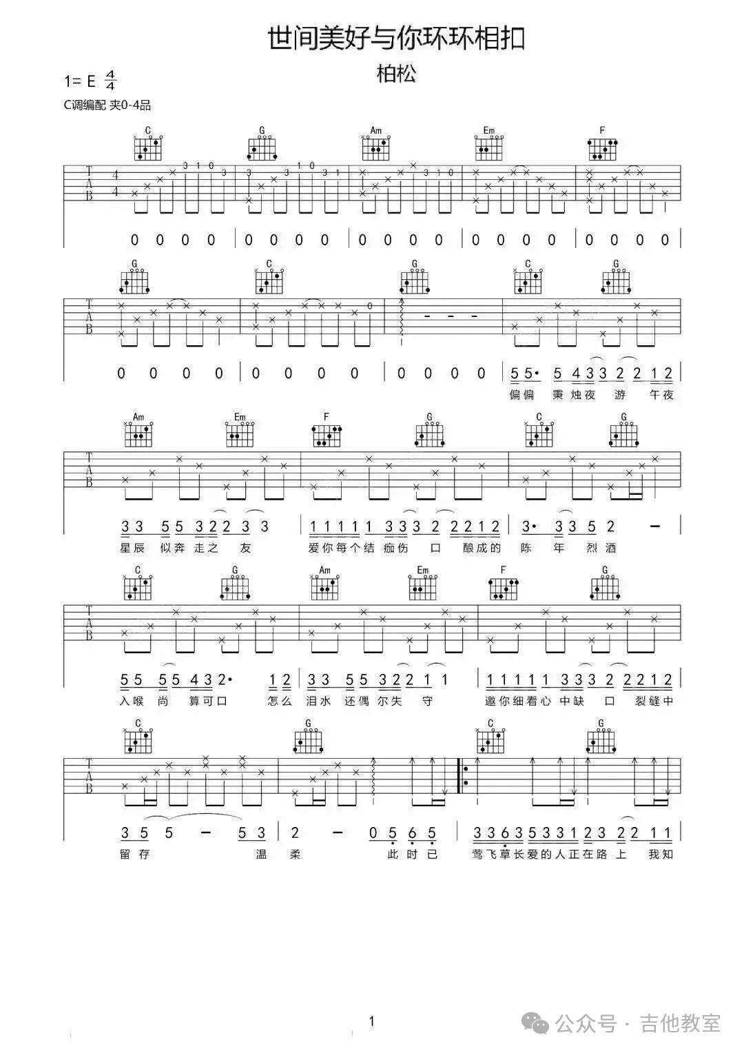 《愿世界美好与你环环相扣》吉他谱