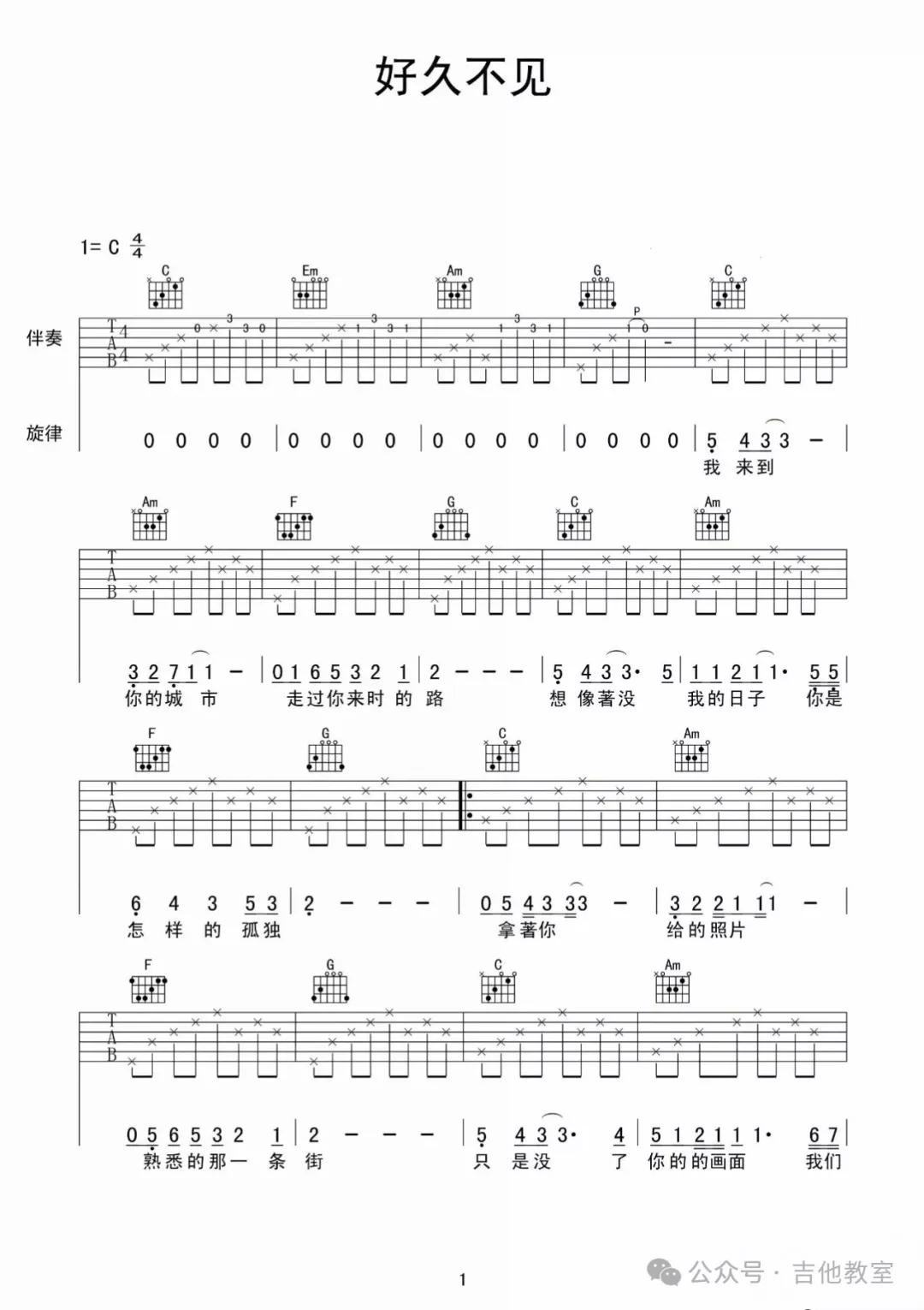 陈奕迅《好久不见》吉他谱