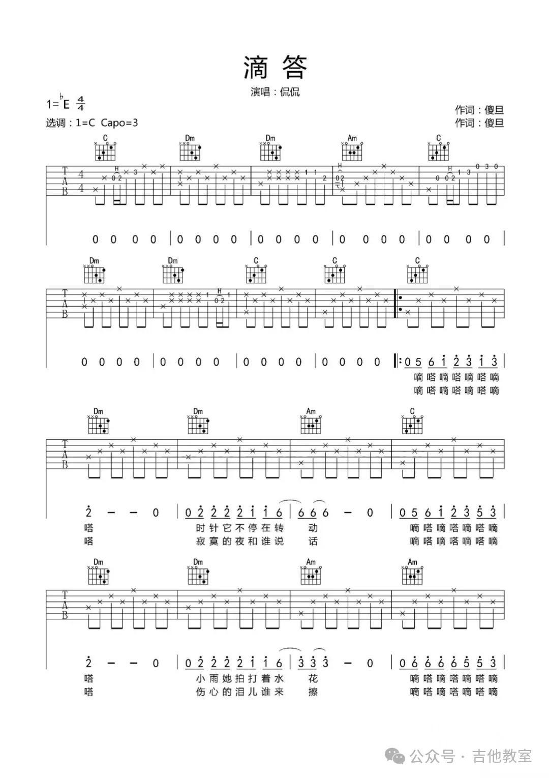 侃侃《滴答》吉他谱