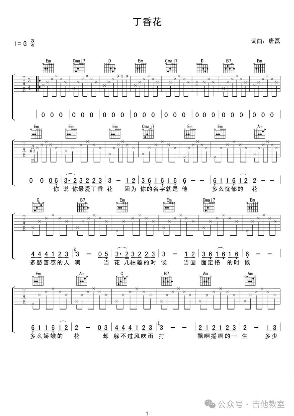 唐磊《丁香花》吉他谱