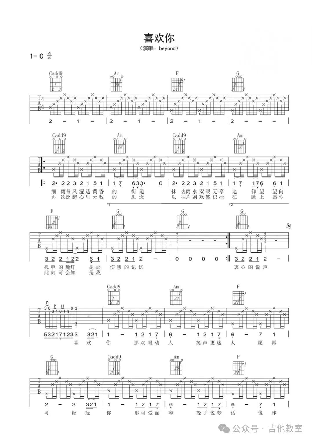 《喜欢你》吉他谱