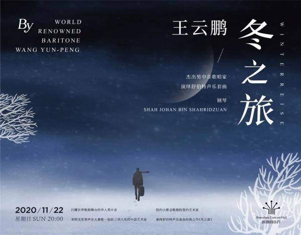 11月22日,多明戈世界声乐大赛唯一独斩三项大奖的中国艺术家、纽约大都会歌剧院签约艺术家华人男中音王云鹏就将在深圳音乐厅演奏大厅,唱响舒伯特声乐套曲经典之作《冬之旅》(点此了解他的故事)。他的歌声会带领听众进入一段怎样的冬之旅程呢?这个问题的答案,欢迎各位听众朋友来到音乐会现场来感受!