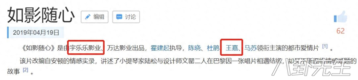 同年公司投资拍摄了电影《如影随心》,直接给王嘉安排了男二号(男主角是陈晓),番位紧随男女主角,力压出道多年的女二号马苏▼