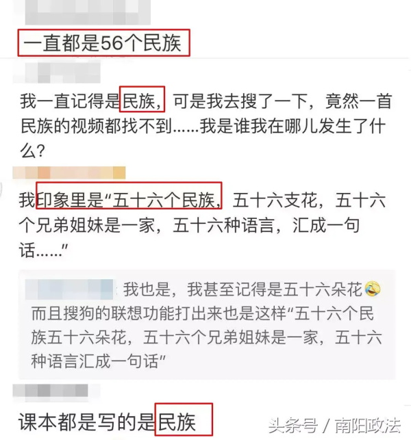 吓得大家赶紧也去听了一遍原唱,“五十六个民族”是从头到尾都没有出现在歌词中。