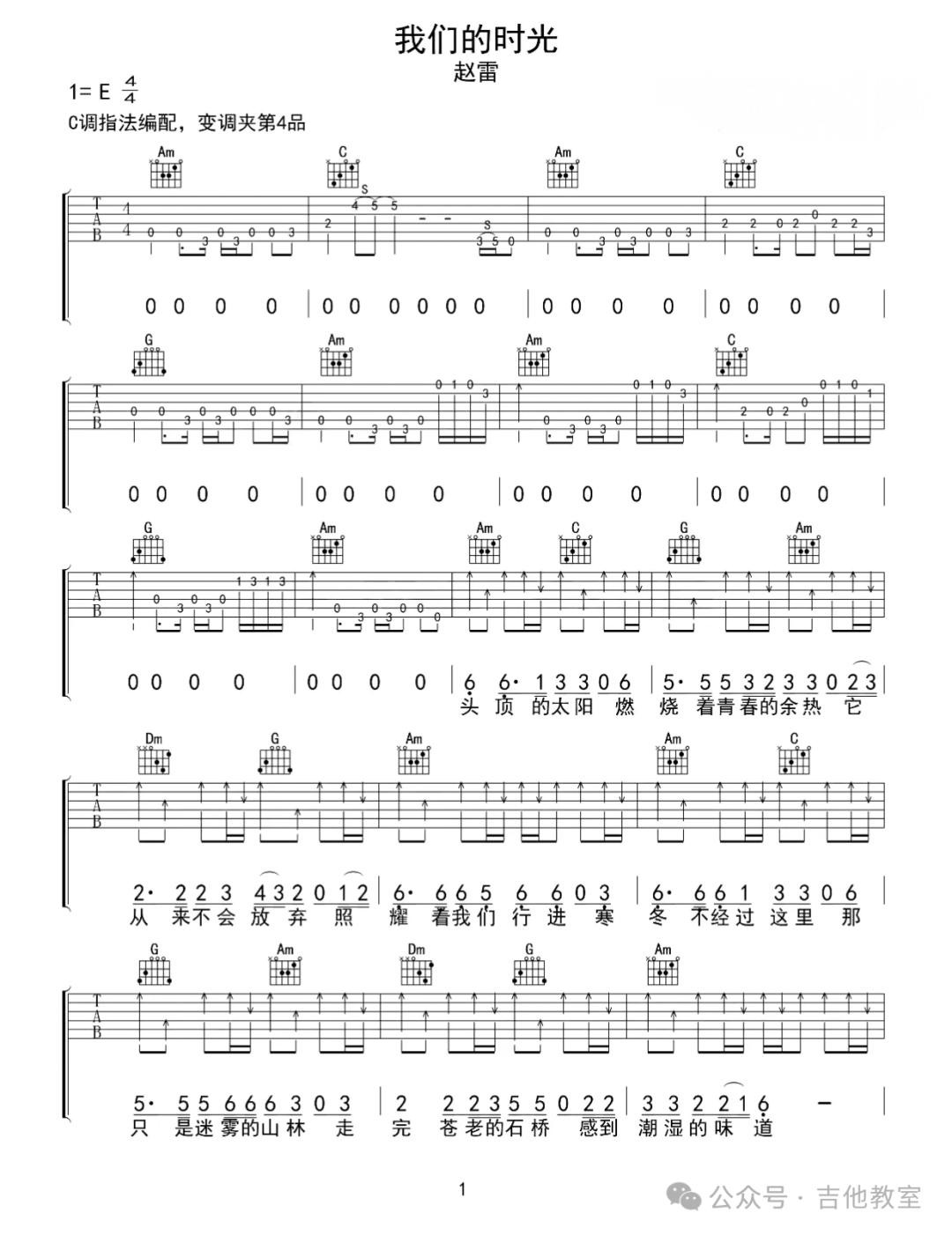 赵雷《我们的时光》吉他谱