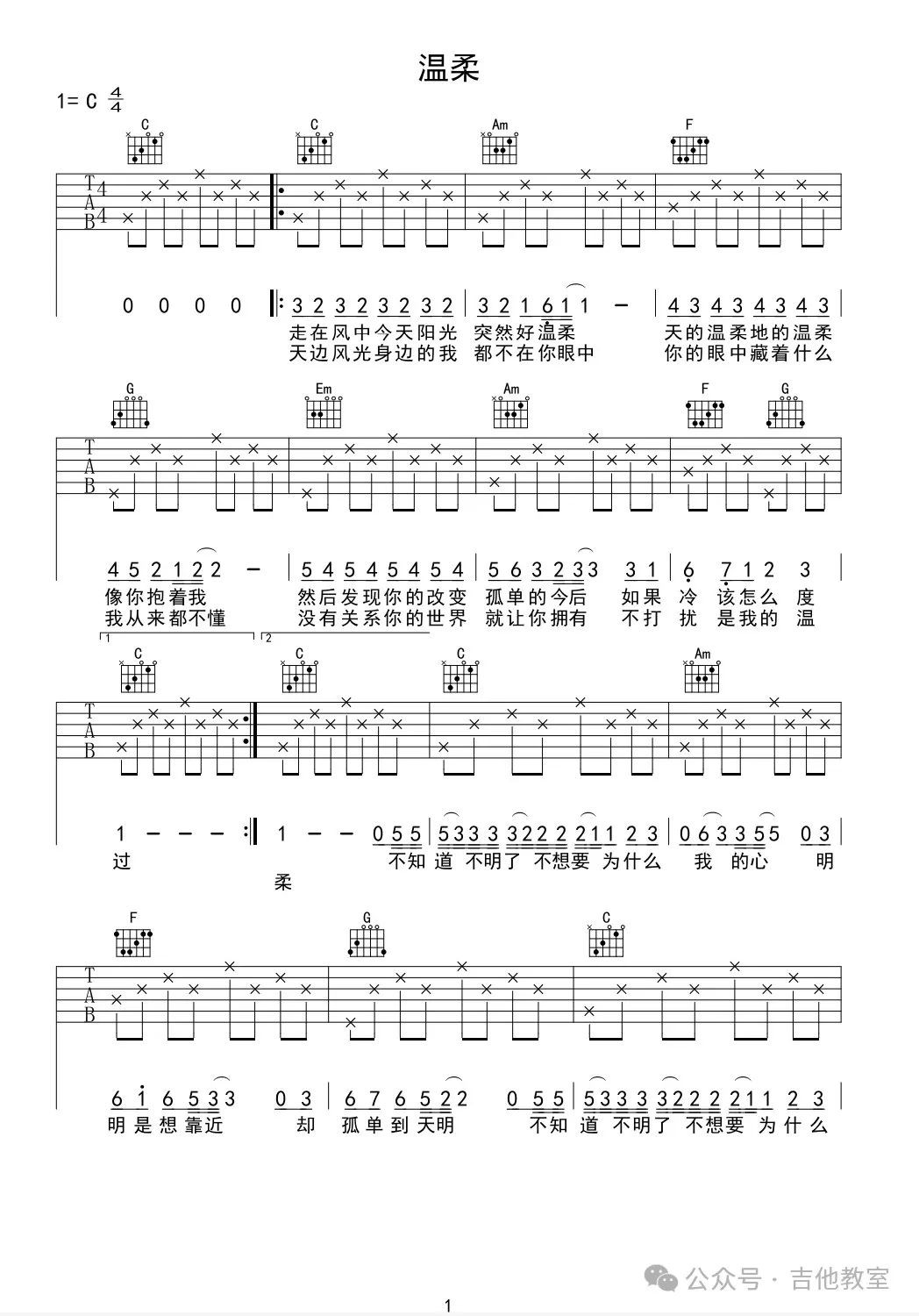 五月天《温柔》吉他谱