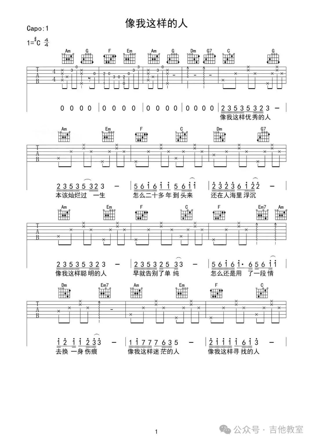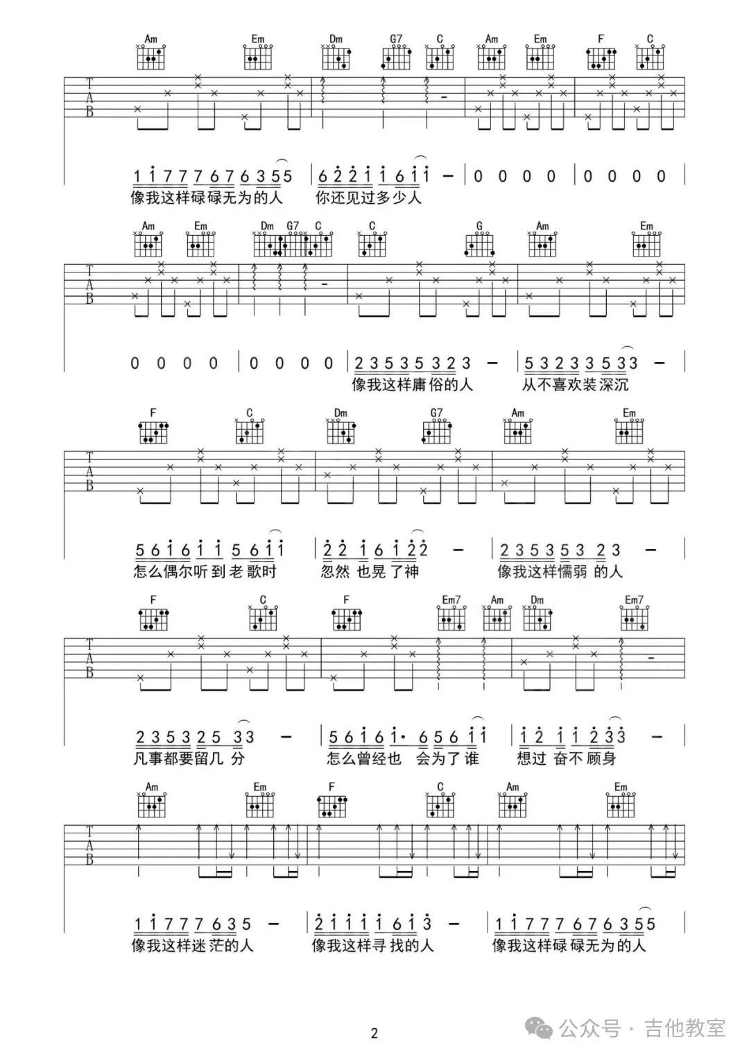 毛不易《像我这样的人》吉他谱