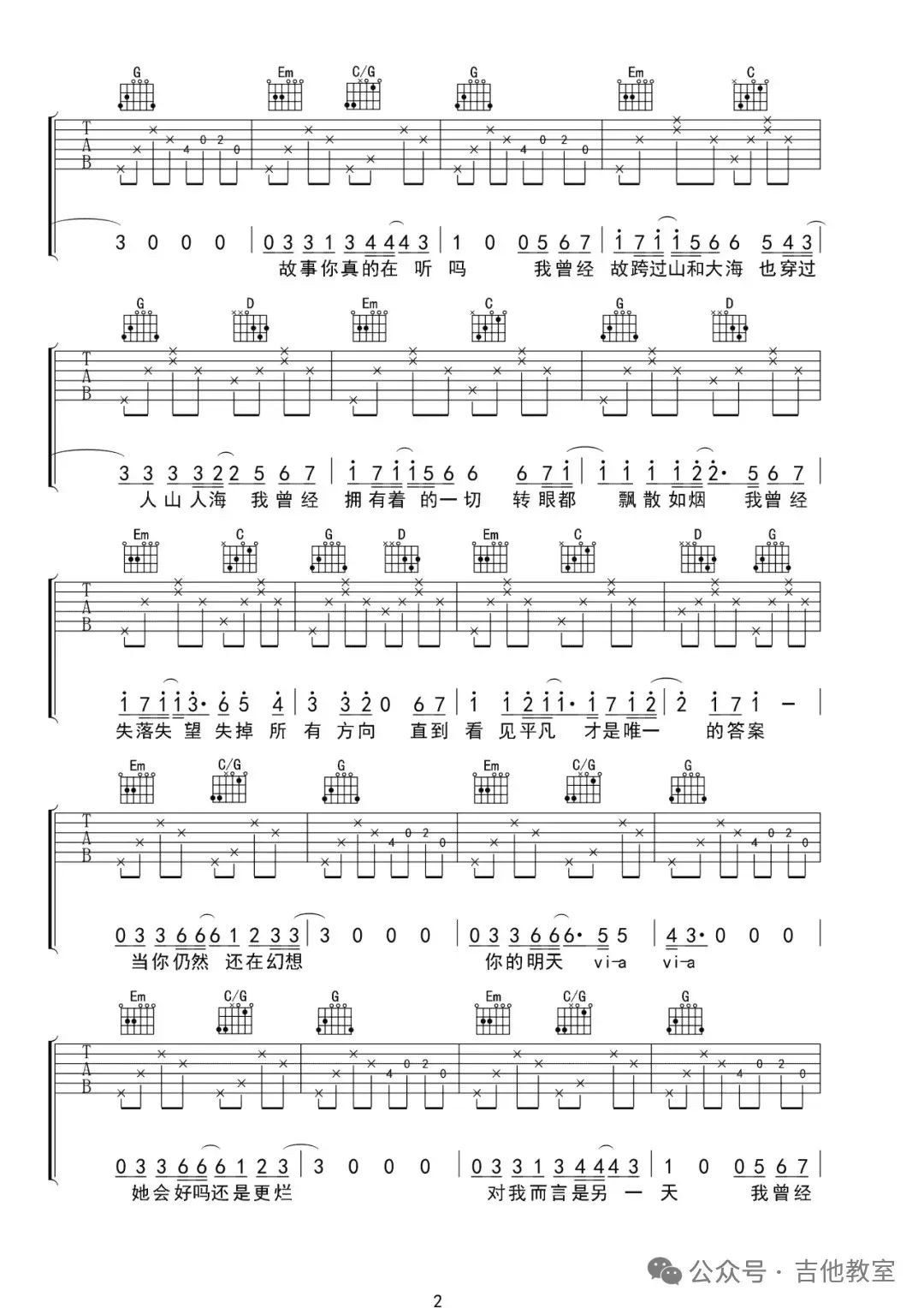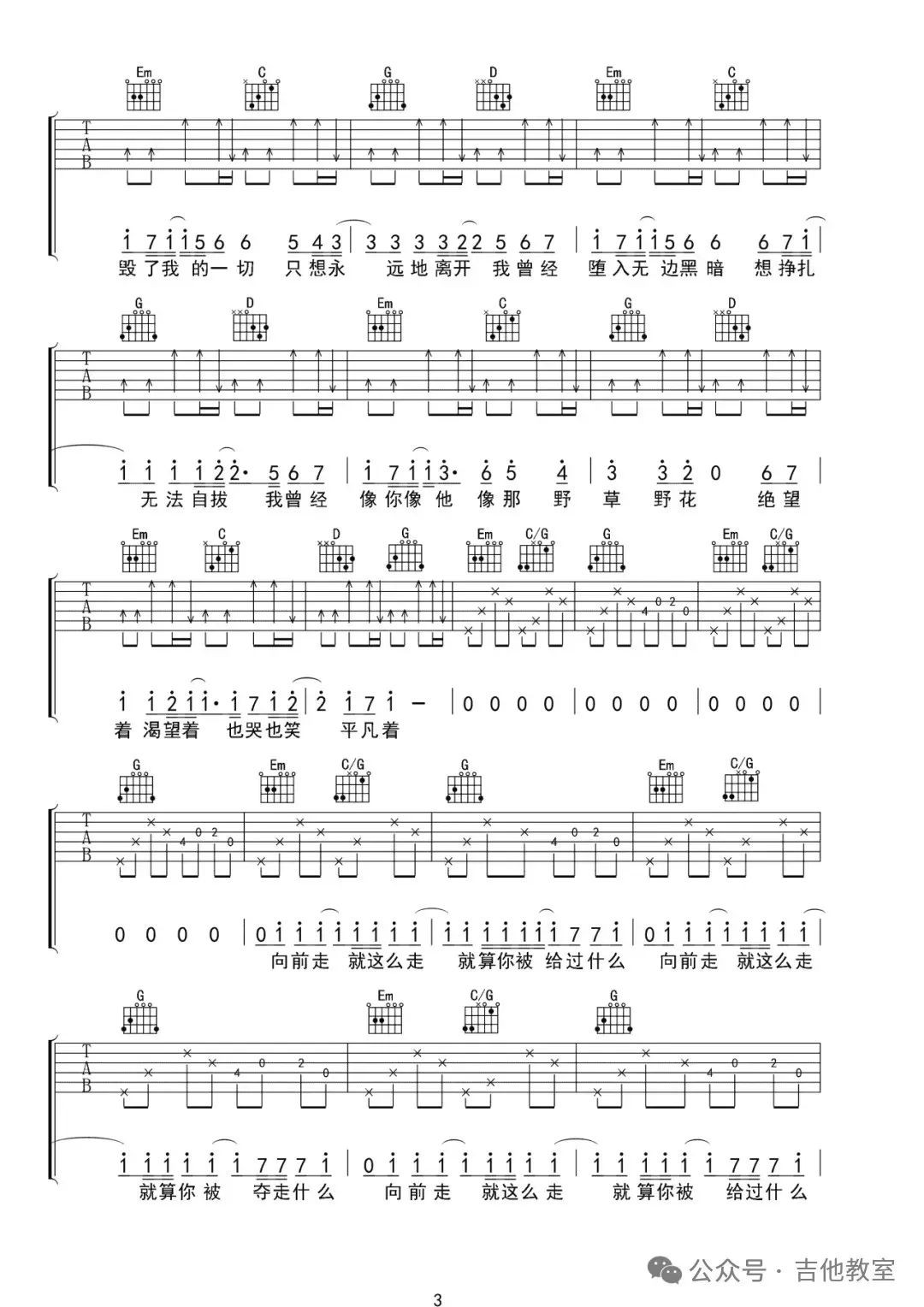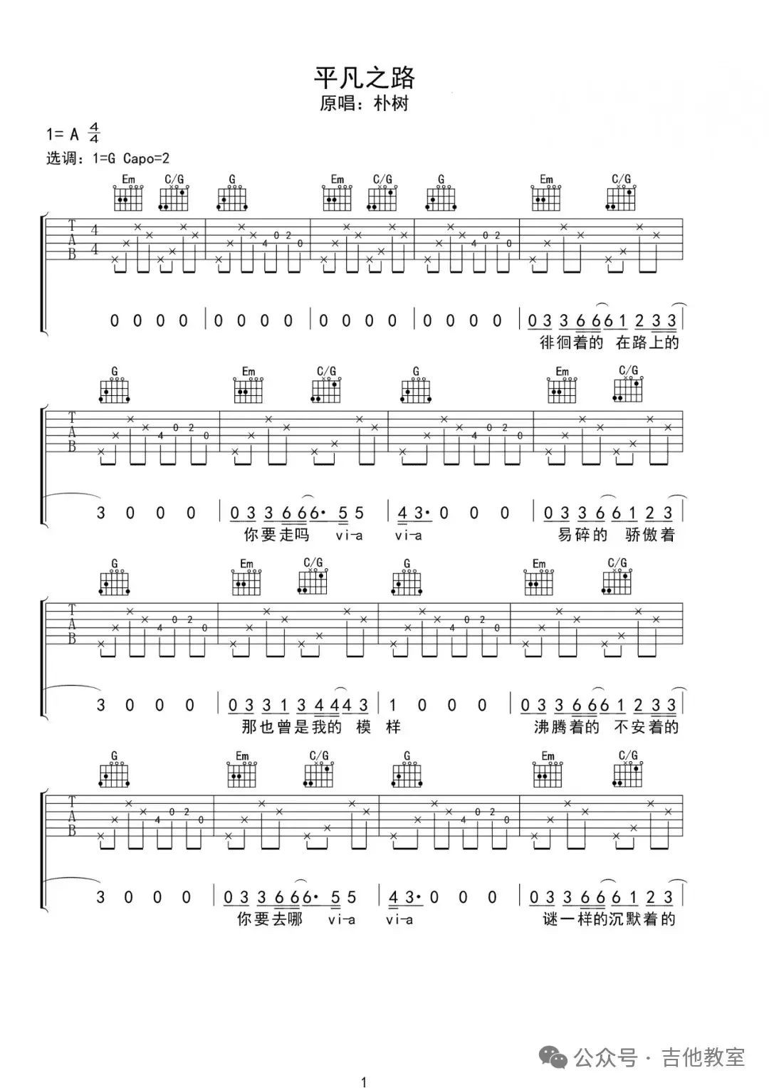朴树《平凡之路》吉他谱