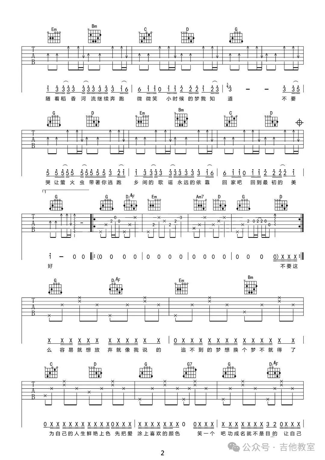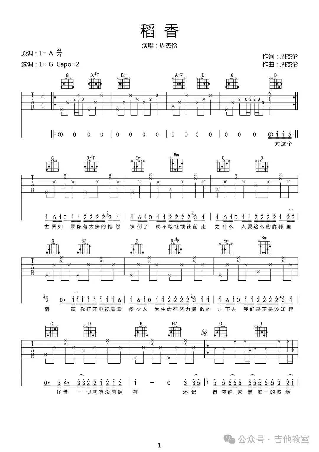 周杰伦《稻香》吉他谱