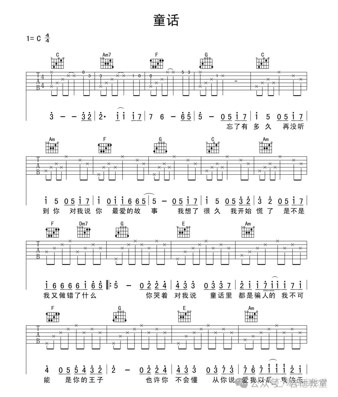 光良《童话》吉他谱