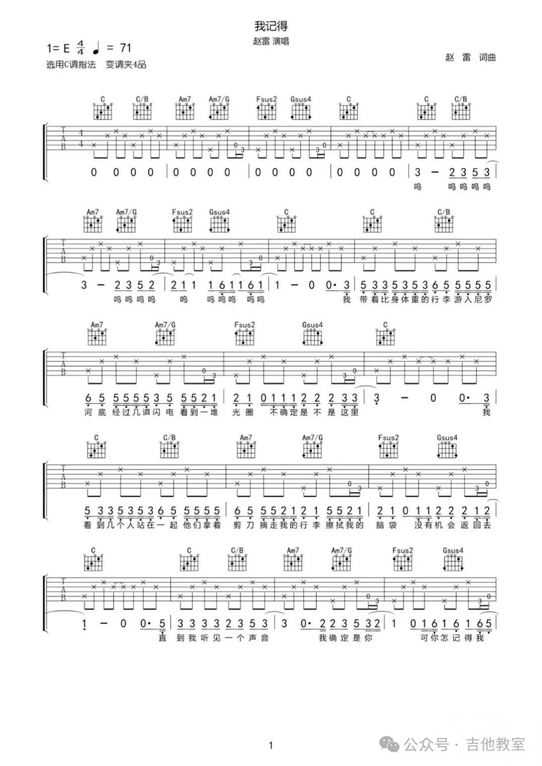 赵雷《我记得》吉他谱