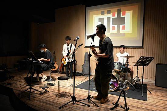 学生乐队正排练曲目 广州新华学院 刘翔宇/摄