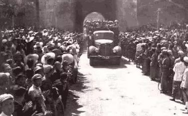 历史资料片:千万居民夹道欢呼,亲切地慰问我军。他们知道,从现在起,蒋匪多年统治西安人民的枷锁被解放军彻底击碎了!