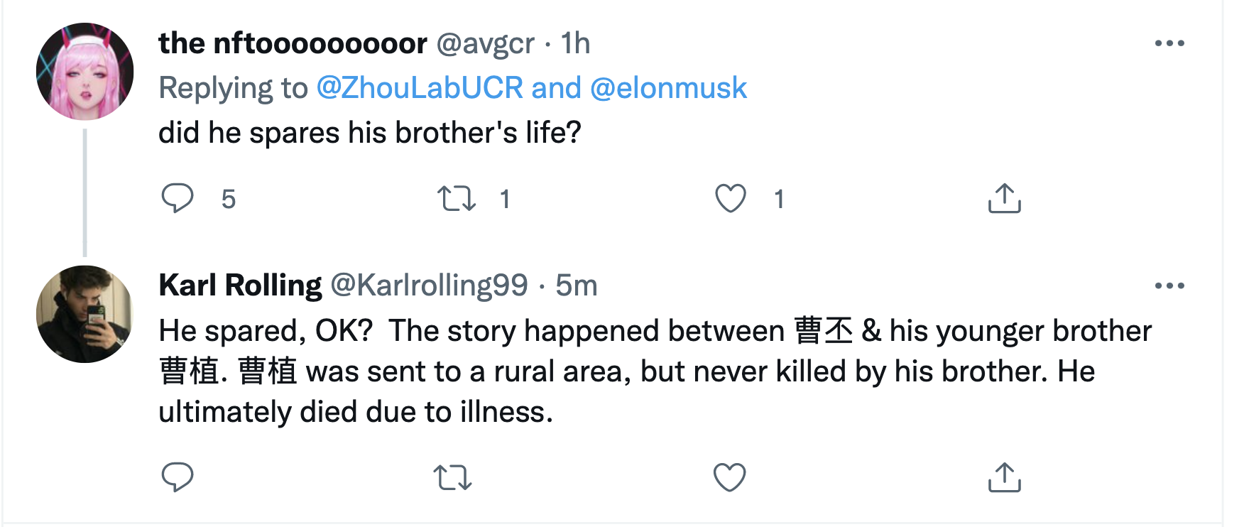 继在推特(Twitter)带货“狗狗币(Dogecoin,一种加密货币)”引发全民“奔月”热潮后,马斯克又因一首三国时期魏国诗人曹植的诗爆火。
