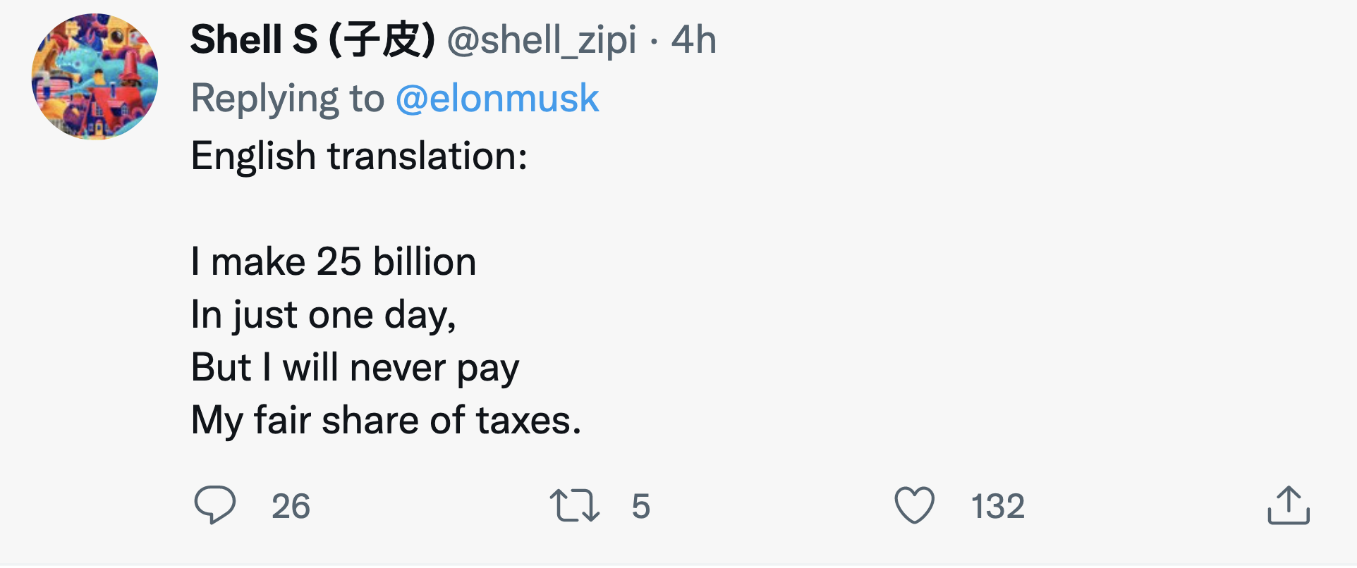 此外,还有一些网民把马斯克的推文当做“文化广场”,通过诗文玩梗,调侃世界首富。