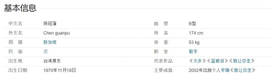 其实到了今天,也没几个人知道这首歌受多方青睐的真实原因,就像是歌曲演唱者陈冠蒲一样,在大众心中成了一个谜。而说到陈冠蒲,他所演唱的《太多》与《就让你走》,估计八九零后几乎都听过,可是这位歌手,却只闻其声不见其人,且在多年前出了一张专辑就神隐了。即使在网上搜索,也搜不出陈冠蒲的太多个人资料。