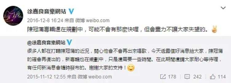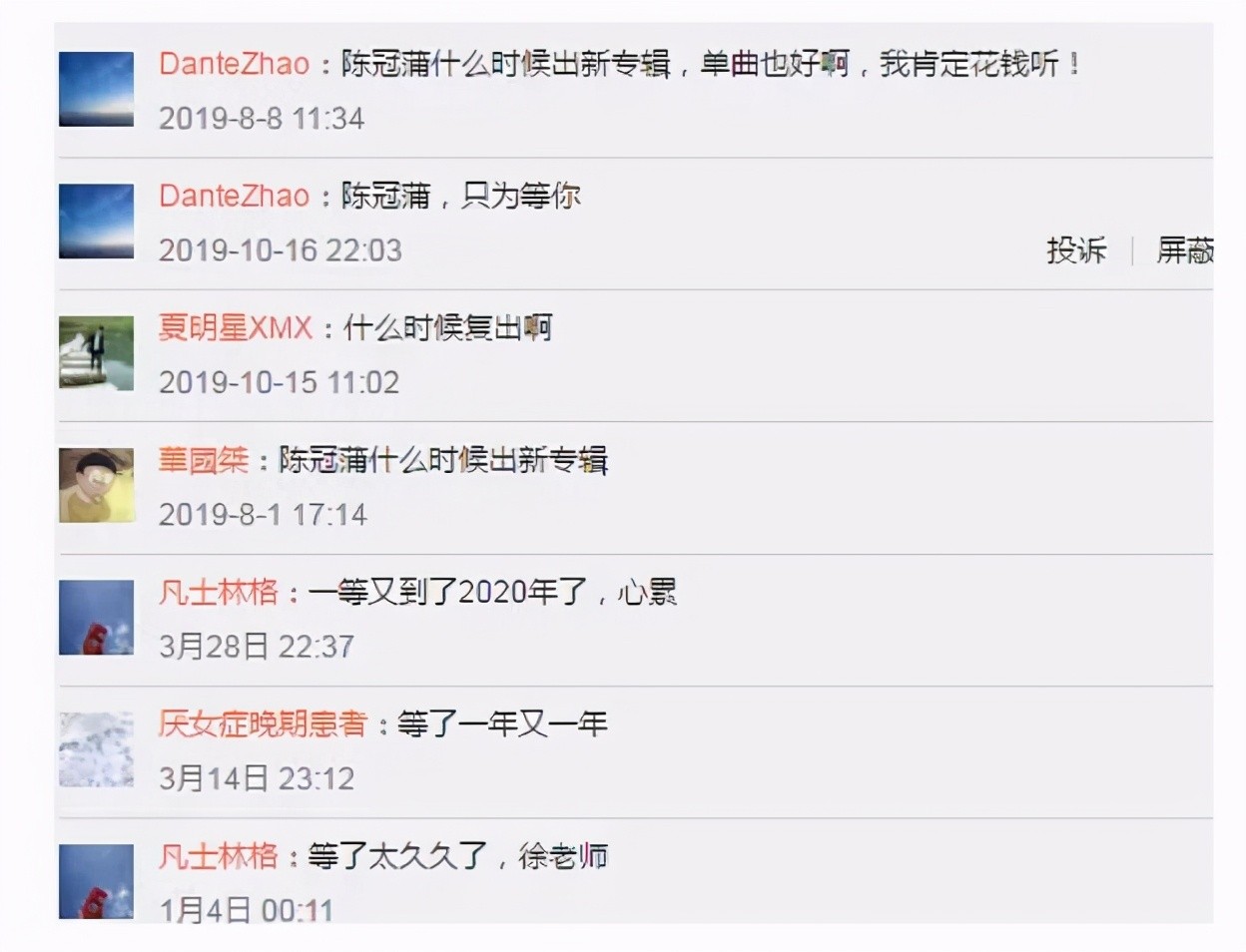 说真的,网友们不必过于感怀,因为这个世上有很多人,给观众们、听众们留下惊鸿一瞥后就消失于茫茫人海,或许这是他们个人的选择。这或许也是陈冠蒲的选择,只希望他能在自己的世界里好好生活!