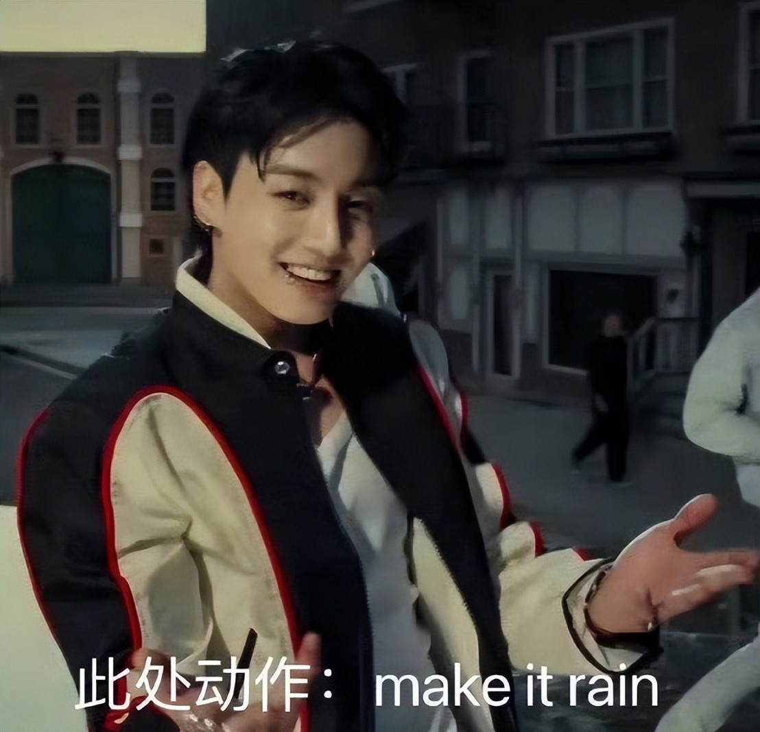 在MV中,有男主人公用锤子砸开消防栓,消防栓里的水向天空喷涌而出的场景,不仅如此,在主歌的编舞设计中,田柾国和伴舞有一个重复举起手往下按的动作,充满了浓浓的X暗示。