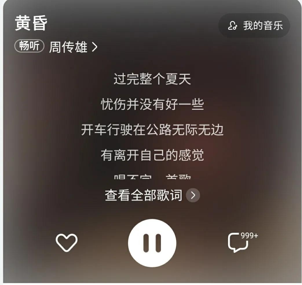 《黄昏》这首歌曲调伤感,是一首恋人的悲伤情歌。歌词描述的是男女分手的场景,有很强的画面感,是经典的伤感情歌。