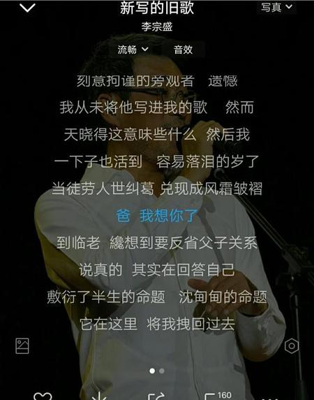 这首《新写的旧歌》,一句歌词:爸,我想你了。让人流泪。有人说少年不听李宗盛,听懂已是不惑年。