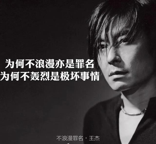 4、《不浪漫罪名》由陈少琪作词、王杰作曲,王杰、杜自持编曲,在2001年四月三日发行,收录于专辑《万岁2001》当中,由英皇娱乐发行 ,是Alcatel手提电话TVC主题曲。这首歌王杰在10分钟以内就创作出来了。《不浪漫罪名》是一首众多八零后、九零后、零零后都很喜欢的歌,这首歌是因为打赌而创作的,而且用了不到10分钟就完成。那时他跟香港某作曲家打赌,可在10分钟以内完成一首完整的歌曲,与自己以前那种悲伤的曲风完全不同的曲子,如果没有成,就请该作曲吃最贵的大餐,然而王杰就用7分钟完成了《不浪漫罪名》。